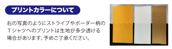 ※下記画像のように、プリントカラーによってはストライプやボーダーのはいっているTシャツの生地が少し浮き出る場合がございますがご了承下さい。